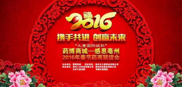 仰首是春、俯首成秋,安徽药博商城电子商务有限公司(药博商城)又迎来了她的第四个新年。我们深知在发展的道路上离不开您的合作与支持,我们取得成绩中有您的辛勤工作。久久联合、岁岁相长。作为一家中药材领域的创业型公司我们珍惜您的选择,我们愿意与您一起分享对新年的喜悦与期盼。故在此邀请您参加一年一度的药博商城盛大年会即“大唐国际城杯”药博商城--感恩亳州2016年春节药商联谊会,与您共话友情、展望将来。如蒙应允、不胜欣喜。 活动时间:2016年1月31日(农历腊月22日)下午2点整 活动地点:亳州宾馆一楼古井厅(药都大道1599号) 主办单位:药博商城 冠名单位:亳州市大唐置业有限公司 协办单位:亳州八方饮品有限公司 亳州好运酒业有限公司 古井汇信金融 安徽壮酒集团 “大唐国际城杯”药博商城--感恩亳州2016年春节药商联谊会活动流程: 1.开场曲 2.开场舞蹈 3.主持人开场词 4.药博商城介绍视频 5.美猴王 6.抽四等奖(电磁炉2名) 7.男歌 8.变脸 9.大唐房产推介+微信红包发放 10.抽三等奖(微波炉1名) 11.杂技 12.抽二等奖(大润发卡2名1000元) 13.舞蹈 14.魔术 15.抽一等奖(大润发卡1名3000元) 16.药博商城团队大合唱 17.颁奖仪式 18.结束舞蹈 此次联谊会可谓是个大Party,我们药博商城不仅邀请了忠实的药商会员朋友们,也邀请了市政府领导、北京投资方负责人、药博商城甘肃,内蒙分公司领导、饮片公司负责人,种植合作社代表等,同时也邀请了我们药博商城员工的家人共聚这场盛会。 现场不仅有精彩的文艺表演,还会进行“药博商城杯”全国十佳诚信网商颁奖仪式,多轮抽奖活动,多种微信互动游戏抢礼品活动等,届时我们也会采用先进的微信直播技术对此次盛会全程直播,更有亳州电视台进行跟踪采访报道。 备注:请提前半个小时入场,在现场签到处凭邀请函可免费领取一份猴年超级大礼包!详情请咨询:400-999-0558 |