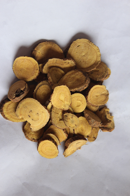 常年大货供应,规格齐全,欢迎咨询洽谈! 甘草是一种补益中草药。药用部位是根及根茎,药材性状根呈圆柱形,长25~lOOcm,直径0.6~3.5cm。外皮松紧不一,表面红棕色或灰棕色。根茎呈圆柱形,表面有芽痕,断面中部有髓。气微,味甜而特殊。功能主治清热解毒,祛痰止咳、脘腹等。喜阳光充沛,日照长气温低的干燥气候。甘草多生长在干旱、半干旱的荒漠草原、沙漠边缘和黄土丘陵地带。 【植物形态】 直立属,叶互生,奇数现状复叶,小叶7~17枚,椭圆形卵状,总状花序腋生,淡紫红色,蝶形花。长圆形夹果,有时呈镰刀状或环状弯曲,密被棕色刺毛状腺毛。扁圆形种子。花期6~7月,果期7~9月。 【生态条件】 甘草多生长在干旱、半干旱的荒漠草原、沙漠边缘和黄土丘陵地带,在引黄灌区的田野和河滩地里也易于繁殖。它适应性强,抗逆性强。在我国,甘草生长在西北、华北和东北等地。喜干燥气候,耐寒,野生在干旱的钙质上,排水良好的、地下水位低的砂质壤土栽培。忌地下水位高和涝洼地酸性土壤。土壤中性或微碱性为好。 【药材概述】 国家标准《GB/T19618-2004 甘草》 出处:《神农本草经》 别名:美草、密甘、密草、国老、粉草、甜草、甜根子、棒草 类别:补益药(亦称补虚药)中的补气药 基原:本品为双子叶植物豆科Leguminosae甘草 Glycyrrhiza uralensis Fisch.,胀果甘草G. inflata Bat., 或光果甘草G. glabra L. 的根及根茎。 药材性状:表面红棕色或灰棕色,具显著的纵皱纹、沟纹、皮孔及稀疏的细根痕。质坚实,断面略显纤维性,黄白色,粉性,形成层环明显,射线放射状,有的有裂隙。根茎呈圆柱形,表面有芽痕,断面中部有髓。 药材特性:甘草,系豆科多年生草本植物。深秋,荚果裂开,籽粒随风散步大地上,天然繁殖。茎挺拔直立;根如圆柱,直径三四厘米,大的五六厘米,长一米多,最长者达三四米。 具体用处:甘草是临床最常应用的药品。生甘草能清热解毒,润肺止咳,调和诸药性;炙甘草能补脾益气,临床用量特大,出口量大。除药用之外,食品上也大量用甘草做糕点添加剂,它的甜度是蔗糖的百倍。西方国家大量进口甘草,从中提取甘草次酸,治艾滋病。甘草退耕还林,水土保持作用更强。陕北农民和西部人们反映,把甘草种子随便撤到地上即可出苗,抗旱性特强。 主要成分:甘草酸(glycyrrhizic acid),又称甘草甜素,一种三萜衍生物,分子式C42H62O16。为甘草次酸的二葡萄糖醛苷(见苷),是甘草的甜味成份,存在于甘草属植物中,在乙酸中结成片状或棱柱状晶体。在220℃分解。溶于水。甘草次酸分子式C30H46O4。有两种同质异晶体。熔点分别为300~304℃和287~293℃,比旋光〔α〕D+163°。溶于乙醇。 药理性质:具有抗炎、抗病毒,和保肝解毒及增强免疫功能等作用。由于甘草酸有糖皮质激素样药理作用而无严重不良反应,临床被广泛用于治疗各种急慢性肝炎、支气管炎和艾滋病,还具有抗癌防癌、干扰素诱生剂及细胞免疫调节剂等功能。甘草酸具有降血脂与抗动脉粥样硬化作用,阻止动脉粥样硬化的形成。 【功能主治】: 补脾益气,清热解毒,祛痰止咳,缓急止痛,调和诸药。用于脾胃虚弱,倦怠乏力,心悸气短,咳嗽痰多,脘腹、四肢挛急疼痛,痈肿疮毒,缓解药物毒性、烈性。 【用法用量】:内服:煎汤,3~9g(大剂量30~60g)。外用:适量,煎水洗渍;或研末敷。 【使用注意】:不宜与京大戟、芫花、甘遂、海藻同用 【适合人群】 1、 适宜胃溃疡者、十二指肠溃疡者、神经衰弱者、支气管哮喘者、血栓静脉炎患者。 2. 湿阻中满、呕恶及水肿胀满者忌服。 甘草,是中药中应用最广泛的药物之一。其药性和缓,能调和诸药。所以,在许多处方中都由它“ 压轴”,称“甘国佬”围绕着甘草的发现也有一段有趣的传说。从前,某乡村中有一老医生,医术精湛。一次他赴外地为人看病,临行给徒弟留了几包事先开好的药,准备应付家里来的病人。谁知他多日未回,留的那几包药快要用完了。徒弟无法,只好把院里烧水用的嚼起来甜丝丝的干柴切碎包起来,妄称是师傅走时留下的。谁知那些患了脾胃虚弱的病人、患有咳嗽痰多的病人、患有咽痛的病人、患有痈疽肿痛的病人、患有小儿胎毒的孩童吃了这些甜丝丝的干柴,病都好了。这种干柴,就是甘草。从此,甘草入药,沿用至今。