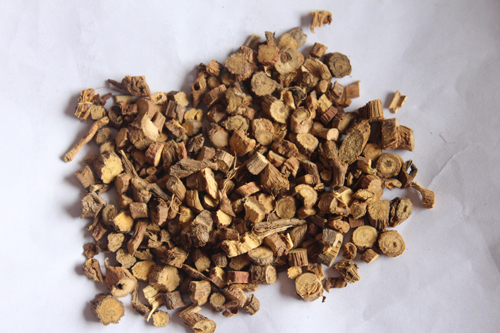 药材性状:表面红棕色或灰棕色,具显著的纵皱纹、沟纹、皮孔及稀疏的细根痕。质坚实,断面略显纤维性,黄白色,粉性,形成层环明显,射线放射状,有的有裂隙。根茎呈圆柱形,表面有芽痕,断面中部有髓。