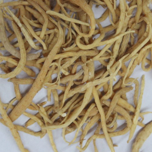 性状鉴别块根细长纺锤形或细长条形,稍弯曲,长2-8cm,少数可达12cm,直径2-6mm,顶端残留极短的茎基或芽痕,下部渐细呈尾状。表面黄白色至土黄色,较光滑,略具不规则的细纵皱纹及横向凹陷,其间有须根痕。质硬脆,易折断,断面平坦,类白色或黄白色,角质样;晒干者类白色,有粉性。气微,味微甘。以条粗、色黄白者为佳。